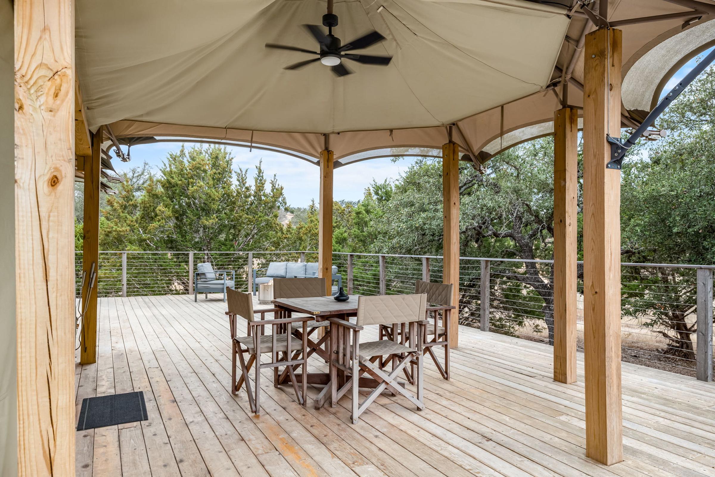 Our luxury glamping lodge features a king canopy bed and two private twin beds, a spa-like bathroom and fully equipped kitchenette. Each suite enjoys heat and AC and outside, fire up the BBQ on the wrap-around deck, pour a drink from the fully-stocked mini-bar or sit under the heavens around the fire pit. ADA and wheelchair-accessible units are available. Please message your host to inquire about availability.