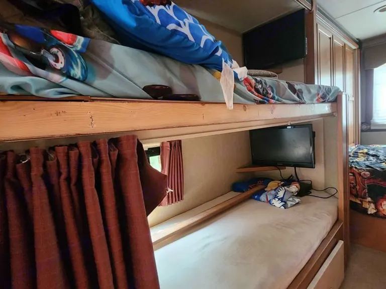 The 31H Minnie Winnie Class C motor home has double slide-outs, a set of bunks, and it sleeps a total of 10 guests (nine comfortably). There is ample space behind the front passenger and driver seats with the large slide out sofa/bed and three burner range fully extended. There are three sets of seat belts across the sofa for safe traveling. To the right of the entry door is a booth dinette that also features seat belts and can provide additional sleeping as well as seating for mealtimes and more. This unit features a refrigerator, counter space, a double sink, and the three burner range plus overhead cabinet storage. In the rear of the RV is a bedroom and bath where you will find the slide out set of bunks and wardrobe w/drawers. There is also a queen sized bed with nightstands opposite the slide out wardrobe.Weitere wichtige DingePets are OK as we are pet-lovers as well, but please take care to clean up accordingly after any pet stay. NO SMOKING in the unit please.