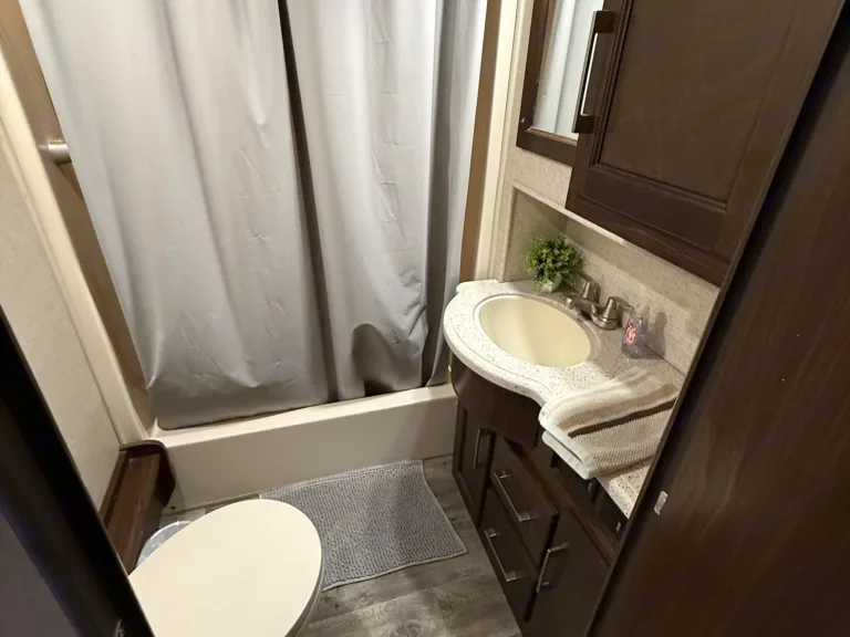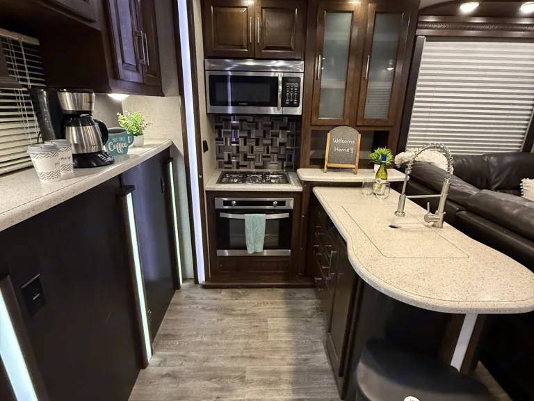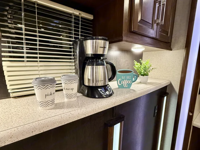 If dry camping and the generator will be used we have a 12 gallon fuel tank and allow up to 4 hours of usage per day, additional hours at $3/hour. If additional fuel is needed for generator or fueling station please choose fuel add-on. If you are providing your own no fee will apply.Was ist inbegriffenWe do not provide any bedding or bath towels, our mattresses come with a clean cover which we ask that stays on for mattress protection.• Bathroom- Some septic friendly toilet paper, trash can & bags.• Kitchen- Cookware, utensils, coffee maker, plates bowls, eating utensils, cooking basics drying mat, pot holders, dish towels, dish soap, clean sponge, trash can and trash bags.• Utility- Cleaning spray and some paper towels.EmpfehlungenAt this time we only offer delivery.