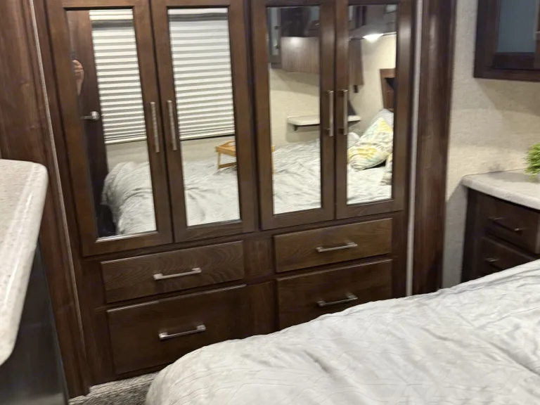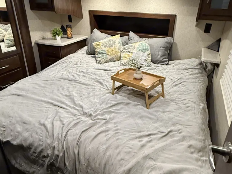 We recommend reserving a pull thru RV spot, due to the size of our unit this makes parking much quicker and easier.