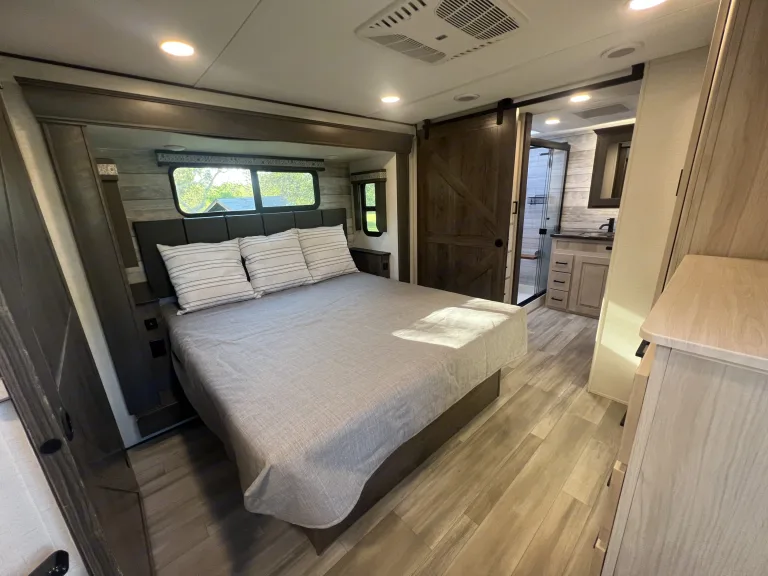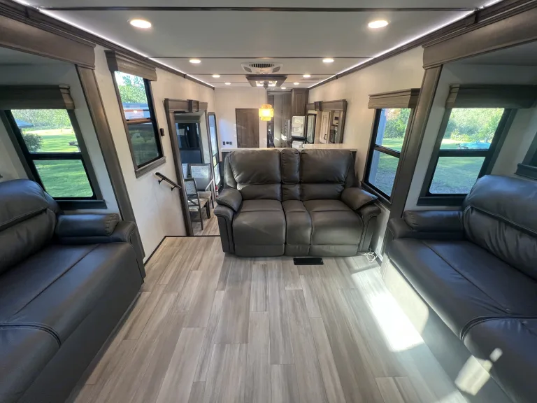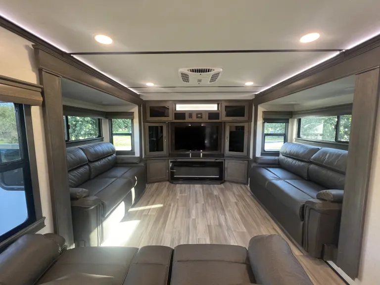 The Host was amazing and very communicative. The rig was delivered on time, the day coming up to the delivery date the Host confirmed the information and was very friendly. The 5th wheel all worked as it should and came with plenty of kitchen accessories needed to prepare meals at the campground. The pictures in the offering do not do this rig justice, this is a very nice and well kept 5th wheel. The living room is spacious and has seating for at least 6 full size adults comfortably to watch the huge TV. 3 AC units keep you cool if needed. Full size fridge is always awesome to have and a decent size kitchen table in the kitchen area. There is a half bath and a full-size full bath with a good size shower. Master bedroom has a comfortable king size bed, Tv and its own AC unit. I will rent this unit again. This 5th wheel is good for 4 adults or 2 adults and 3-4 small kids.