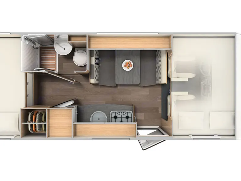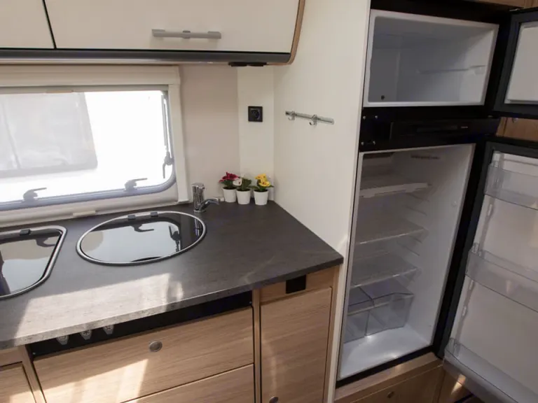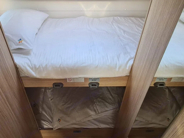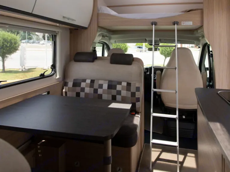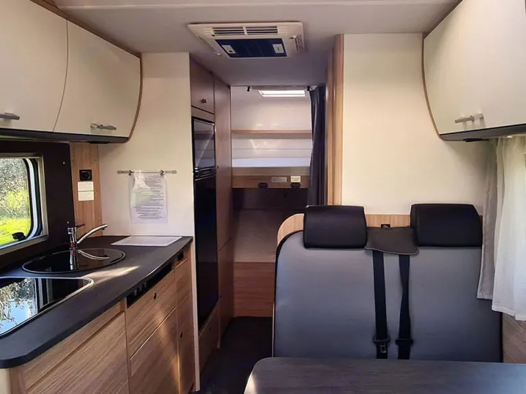 This fantastic 6 berth coachbuilt motorhome is built with the usual high standard German build quality. The spacious Sunlight A68 is excellent for families and features a modern and vibrant interior packed with the latest technology. The layout is both practical and functional and features a King size double bed above the drivers cabin and bunk beds in the rear and a double bed in the dinette. The spacious dinette can seat four people and has a total of six seat belts. The A68 boasts a large garage with enough space for all of your gear and valuables. The separate large refrigerator and freezer is a must with enough space for all of your provisions. The Combi boiler and heater can be operated on either gas or electric an efficient cost saving especially out of season.