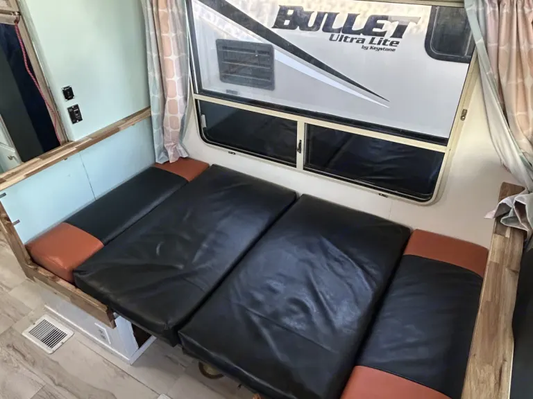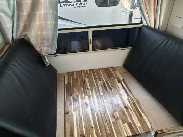 The entire RV is also complete front to back with new navarro maple vinyl plank flooring for a beight and clean vibe.The dining room is also equipped with a new bluetooth stereo receiver and speakers that run off the solar and deep cycle battery system.