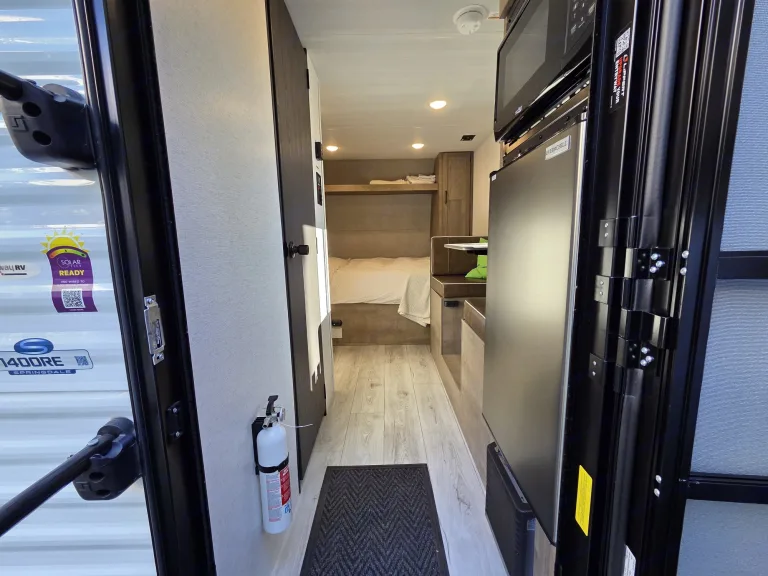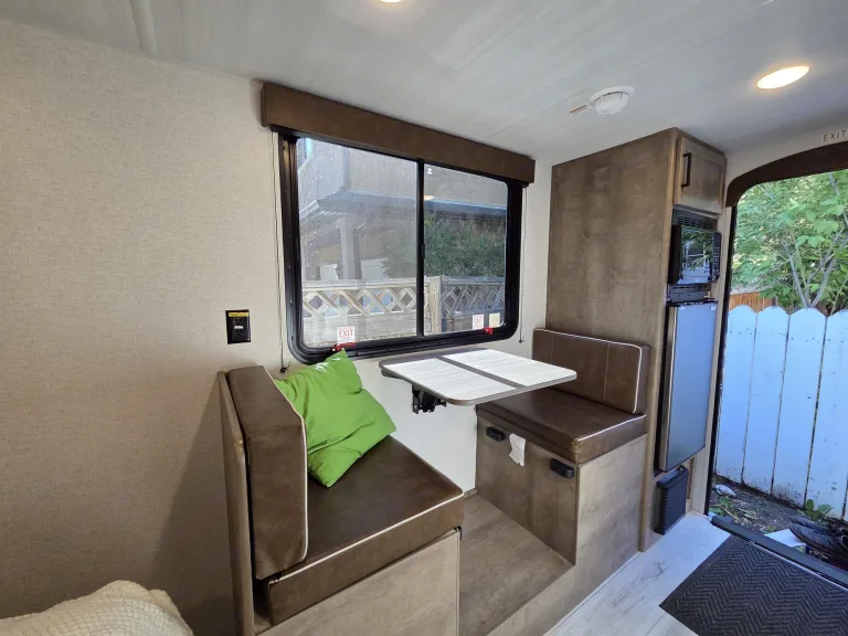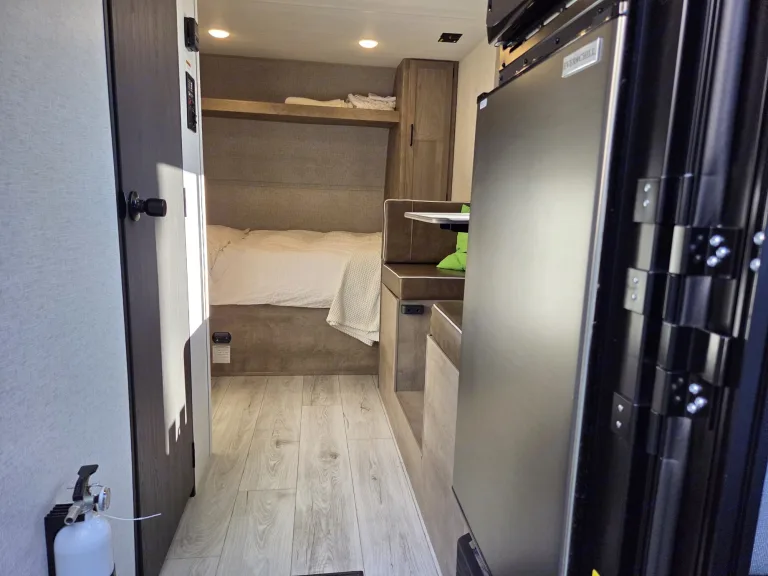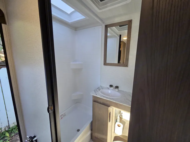Looking for your home away from home? This Trailer offers everything you need for unforgettable adventures! With a roomy layout, it comfortably sleeps up to 3 people (2 adults, 1 child). The fully equipped kitchen comes complete with a stove, microwave, and fridge, while the full bathroom ensures convenience on the go. Relax in the cozy living area and enjoy outdoor meals under the retractable awning. Impeccably maintained and road-ready, this Trailer is the ultimate travel companion. Contact us today to see it for yourself!Was ist inbegriffen• Enjoy comfort on the go with this cozy, well-stocked travel trailer. Features include a fold-out awning, queen-sized bed with soft linens, pillows, and extra blankets. The kitchen comes with pots, pans, plates, cups, microwave, stove, fridge, toaster, and kettle. Stay comfortable with air conditioning and heating. Additional amenities include leveling blocks, eco-friendly toilet paper, and an easy setup hitch system. Perfect for your next adventure!