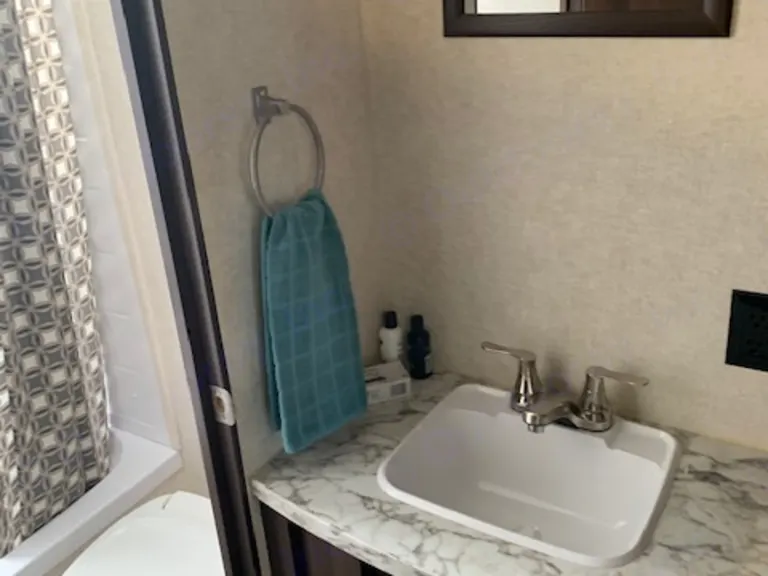 This travel trailer also has an outdoor kitchen for cooking an early morning breakfast or having your own late night drinks under the awning. There is an outdoor shower for spraying off to keep the outdoors, out. Surround sounds speakers also integrated into the awning to listen to your favorite radio, game on TV, or Bluetooth music. Keep up with the latest shows or scores with a mountable TV that can be viewed in master bedroom, in living room, or even outside under the awning.Your next adventure awaits!