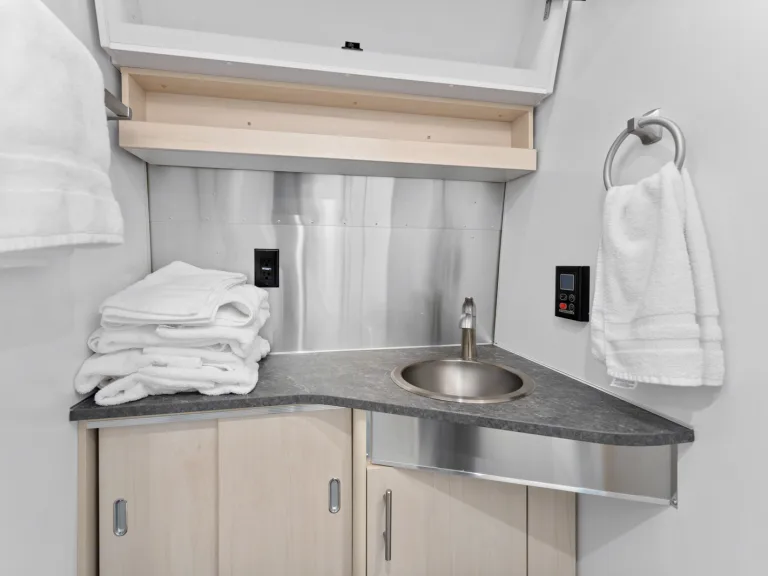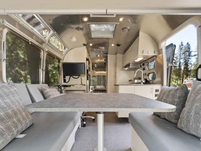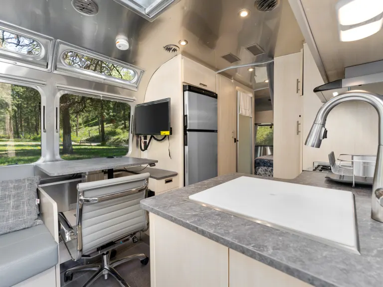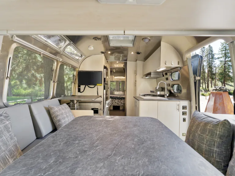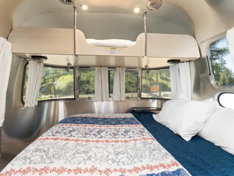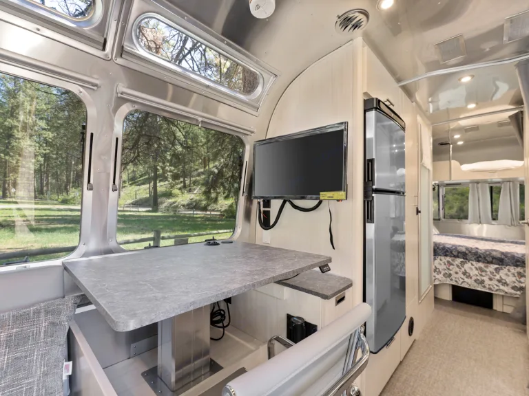 Fondly nicknamed “Hatch,” The Entiat is a 25’ Flying Cloud 25FBQ model with a rear hatch that opens by the dining table, bringing the great outdoors to you. Don’t worry, there’s a retractable screen to keep the bugs at bay! Features a dedicated workstation with adjustable desk that converts from chair to standing. Stay connected with high speed wi-fi.Includes a fully-equipped kitchen, convection oven, and luxury linens and towels. Soak in the panoramic views of the valley and enjoy the sunshine through the skylights. Comes complete with stereo system, TV and solar panels as well all the other amenities our resort has to offer. There is also 2 Adirondack chairs, a picnic table and a gas grill for your use and enjoyment. As well as a pool.