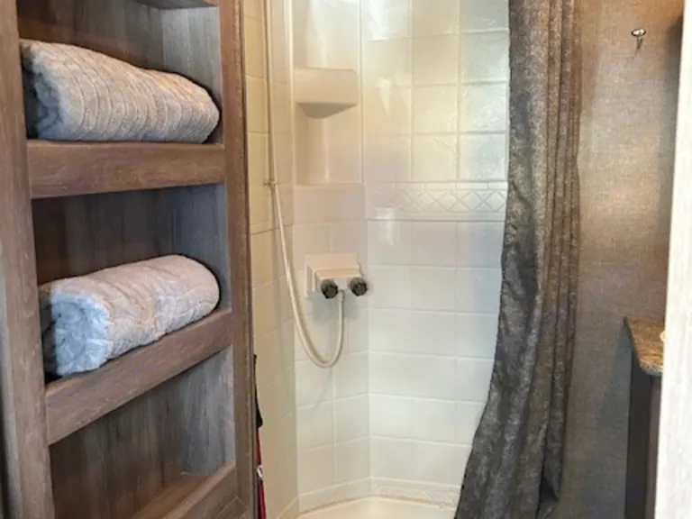 Sleeps 6 with two queen-size beds and dinette beds. Large bathroom. 100 gal fresh water tank TV, microwave, gas oven, and 3 burner stove. A/C, propane heater, large refrigerator, and dinette will seat six adults. Room for 6 motorcycles or 4 seater UTV. Easy to clean floor has been coated with spray-on truck bed liner.