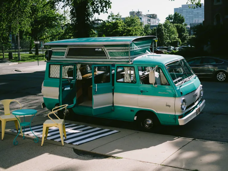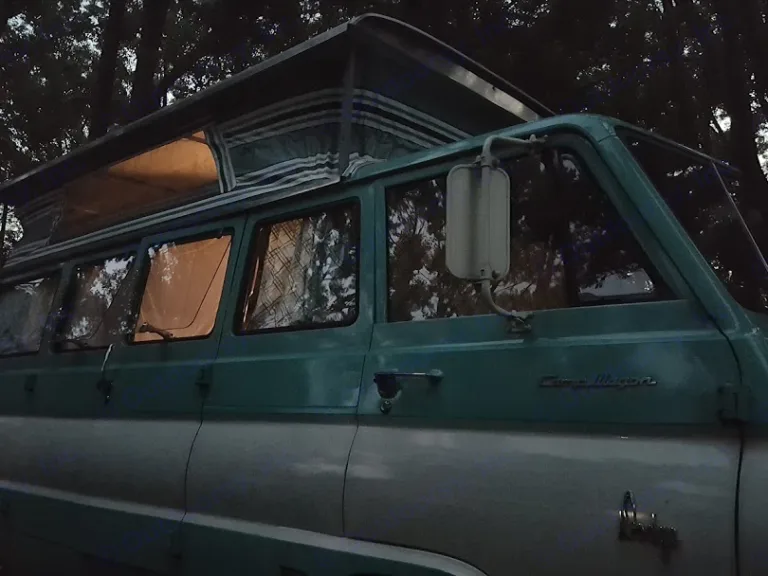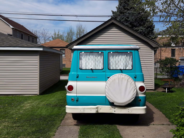 Please read all below before inquiring about availability.Scheduling a test drive is recommended. Please allow a few weeks to coordinate/schedule test drive and training with you.Drive and camp in this rare vintage camper van from 1967 (56 years-old). It features a twin bed (only), a propane stovetop, icebox, sink, closet, cafe table, camp gear and a steel & canvas pop-top that allows you to stand up and get fresh air in the camper!The CampWagon is also ideal for use by photographers and as a fun backdrop for special events. Film, photography and event rates differ. Please inquire.It is an automatic, V8 318, 3-speed, 727 transmission and has drum brakes and manual steering. Nothing is power assisted. Its 3rd gear will take you to a maximum cruising speed of 60 mph on flat ground, so the van is NOT suited for highway driving. It is also not suitable for passengers other than the driver and passenger. The rear seats (1967) do not have safety belts. The front passenger compartment has room for two adults, and provides lap belts for safety and an AM radio for fun. The van can connect to standard campsite electrical hookups using a provided extension cord, powering interior lights and functional outlets. There is no water hookup, but a small reservoir container may be filled to supply the camp sink.Note: This van is best suited for nearby destination camping and not long road trips as it moves more slowly and consumes more fuel than modern vehicles. The vintage technology requires caution, alertness and consideration while driving. We prefer it be used in Northwest Indiana, Northeast Illinois and Southeast Wisconsin Only.This van is not suited for festivals or large event settings. It is not for children passengers. Smoking is not allowed in or near the camper.Please message us if you would like to come test drive it and see if you would like to drive and camp in this vintage CampWagon for your next adventure! We are available by arrangement for you to come test drive the CampWagon and see if it is the right fit for your trip.The van sat unused for 35 years in a Wisconsin garage. We purchased it in the spring of 2016. After two years of restoration work that included a new floor, new ceiling, new curtains, new cushions, insulation, upgraded mechanicals, new zippers in the canvas, new tires and much more TLC, this rare CampWagon is yours to experience for once-in-a-lifetime fun.Enjoy the spaciousness and comfort the great minds of Detroit and Elkhart, Ind. cooperated to build in 1967. Very few of these campers survive and this is one of the best examples in the U.S. and Europe. The camper conversion was done by the Travel Equipment Corp. in Elkhart, Ind. The pop-top canvas was made in Goshen, Ind. The van was manufactured by Dodge in Detroit.Was ist inbegriffenIt is stocked with cooking gear, dining gear, linens, pillows, blankets, towels, cleaning supplies, a small freestanding canopy, and a portable propane camp stove. You provide your own personal effects, personal gear, and food.EmpfehlungenA starring role in the Hubbard Street Dance Production with the band OHMME:Fantastic couple's engagement photo session video, using the CampWagon:Dunes area camping:Chicago and NW Indiana area camping: