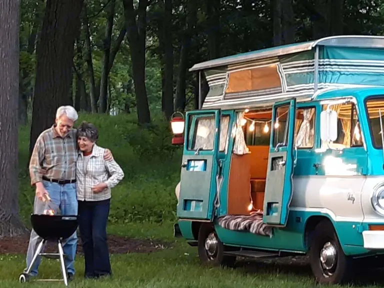 My wife and I are avid campers and hikers. We have worked on and used camper vans for more than 30 years. Our love for VW campers led to us to find and restore this great Dodge and we enjoy sharing it with others. It is a very rare camper at this point. We hope you enjoy it as much as we have and that you use it to make great memories camping in the area and enjoying Lake Michigan.
