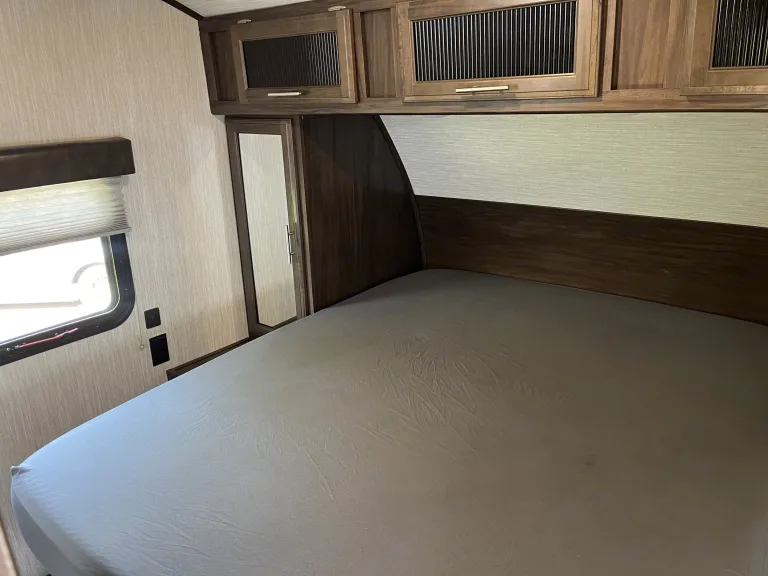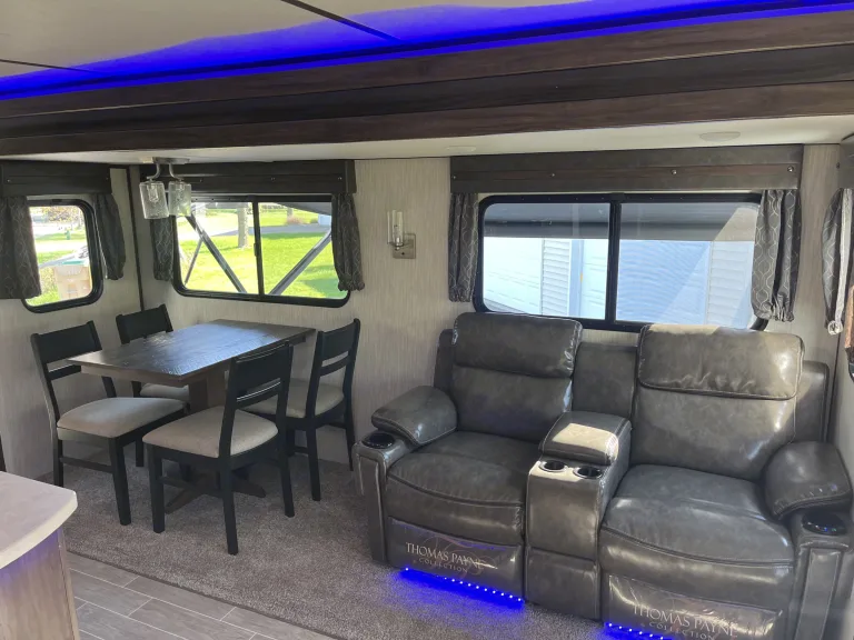 Living room and kitchen have opposing slide outs, creating a comfortable main area.