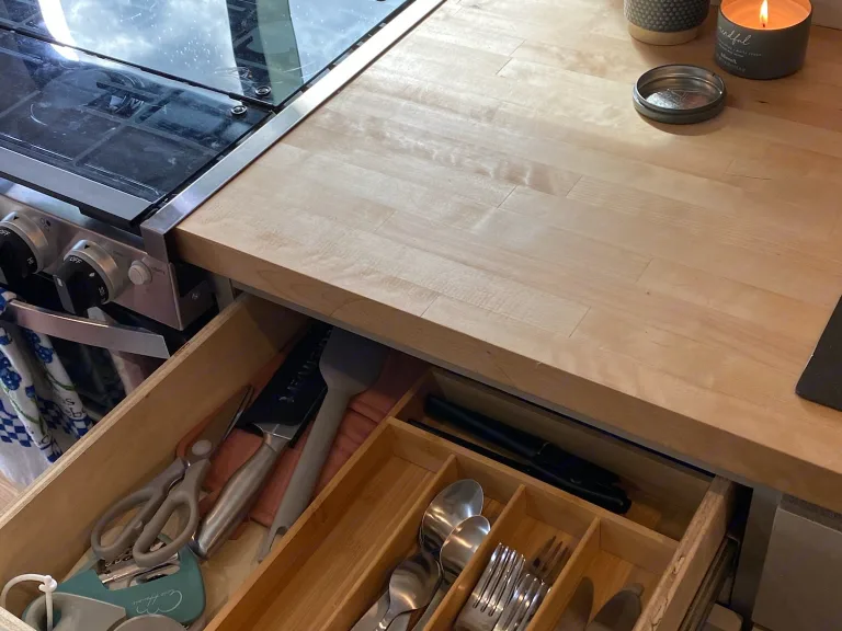 Our van (Big Betty) is fully-equipped with all the comforts of home: hot-water sink and shower, toilet, oven & stove, and a big eating/working area that converts into a comfy queen-sized bed!She's also ready for any weather with an efficient, powerful A/C unit and a heater for your cold weather nights. With 600 watts of solar on the roof, 580Amp battery bank, and 40gal. water storage, you won't have to worry about running out of power or water!Our van has plenty of storage for your adventure gear, is a dream to drive, and is ready for your next adventure! Was ist inbegriffen• Clean linens for the bed, kitchen, and bath