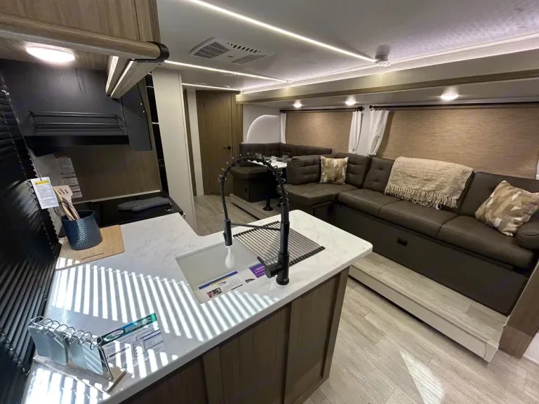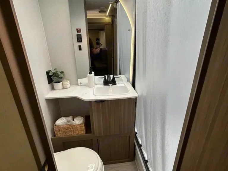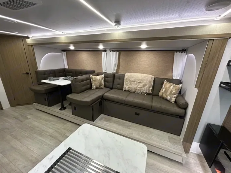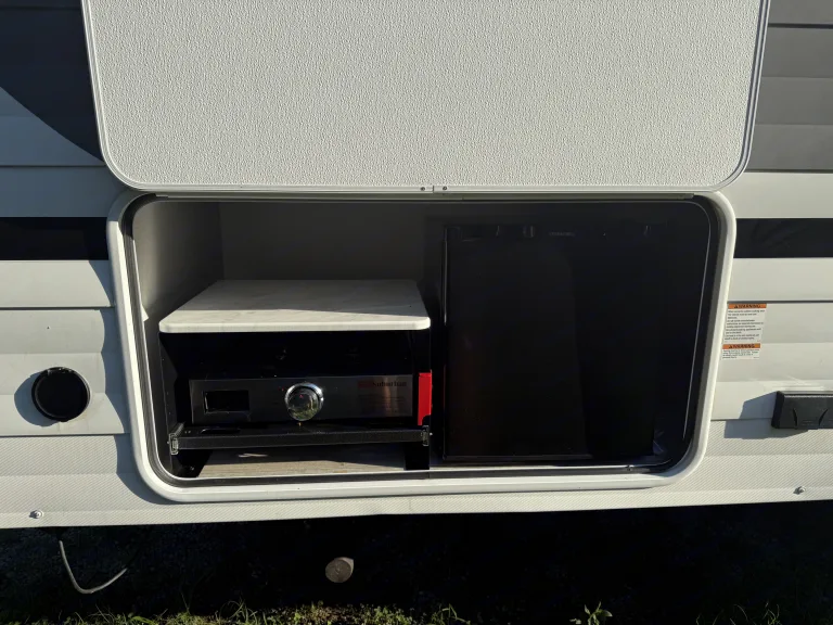 Rent out this cute camper with plenty of space. Oversize refrigerator, LED lights outside, amazing lighting inside, JBL Speaker that plays inside and outside, Comfortable beds and couches. Lots of space for your belongings inside the camper. Outdoor kitchen, out door shower. Endless hot water tank. Tv in master and living room.Was ist inbegriffen• silverware