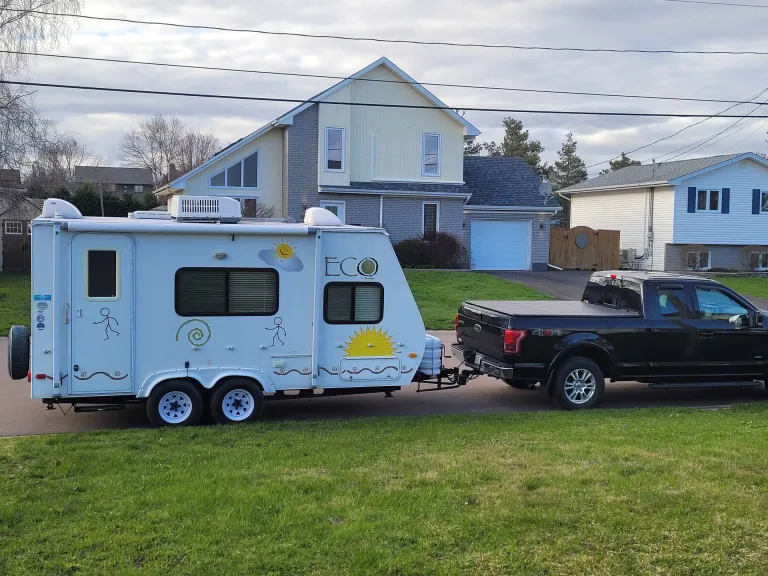 Great family trailer in excellent condition inside and out. Has front double bed for the adults and a sofa bed for the toddlers. The front is a dinette table that folds down to a bed, sleeps up to 4 people, preferably 2 adults and 2 young children. Comes with lots of storage cabinets. Includes : fridge/freezer, A/C, fan and heater forced air, microwave, double burner stove, double sink. full bathroom has shower, sink and toilet. It has all kitchen accessories, pots/pans, dishes, cups/mugs, toaster, utensils, dish soap. Has manual canopy/awning. Hitch with distribution bars.Was ist inbegriffenhave extension cord, sewer hose, water hose, wheel blocks, jack leveling pads, lawn chairs