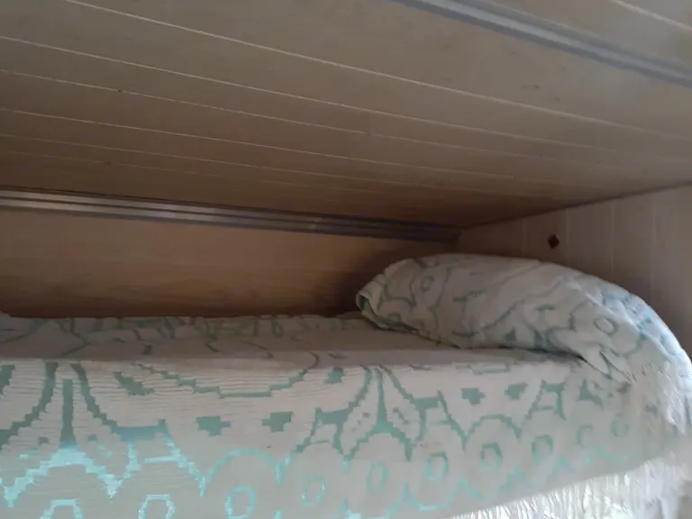 I supply the bedding and towels for a nominal cost upon request. Their are three beds, a bunk above the couch, it would be good for a child about 50 lbs. The couch converts into a full size bed, and the dining table converts into a twin size bed.