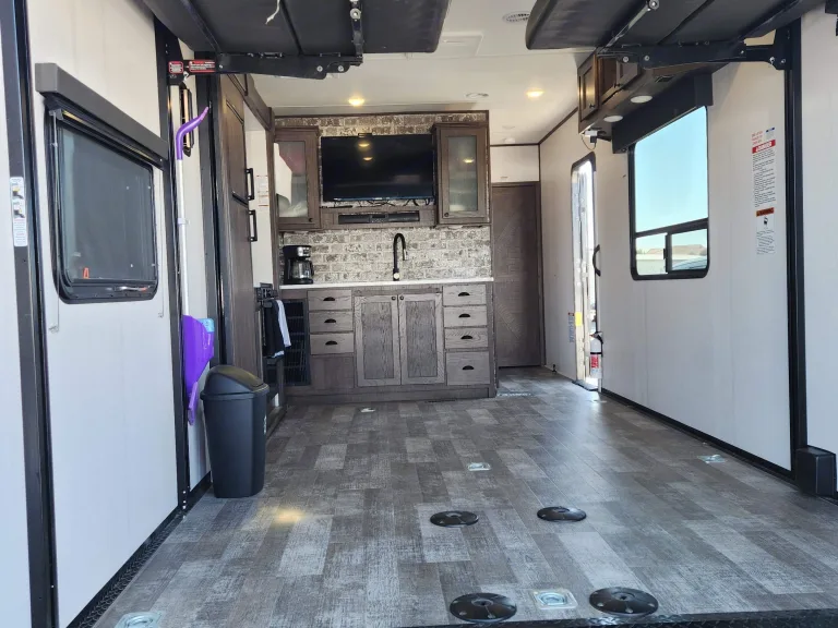 The camper was super clean, fully functional with no issues, and came equipped with dishes, sheets, a broom, pellet grill, and coffee machine. It perfectly fit a RZR 4-seater and a 72"x13.6' SXS.