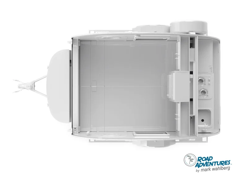 The T@G XL weighs in at 1,590 lbs and features the modern amenities, doors, windows and styling from the T@B while marrying it with the retro, teardrop shape and diminutive size. The trailer also features a full galley in the rear clamshell with a sink, 2 burner stove, microwave, and a 12V cooler.