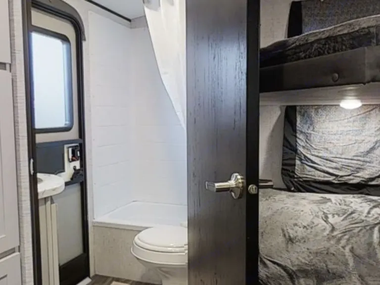 Create unforgettable memories in our spacious family camper with a modern kitchen and living space. The bedroom has a full-size queen bed, and the couch turns into a large bed with double bunks. Great 21-foot awning with lighting, an outdoor 2-burner stove, and a small refrigerator. It also has plenty of storage and is insulated for cold/hot weather camping. Includes linens and pillows, cast iron pots and pans, and grilling tools. Add one of our Kayaks for even more fun on your adventure.Was ist inbegriffen•Weber Q Gas Grill