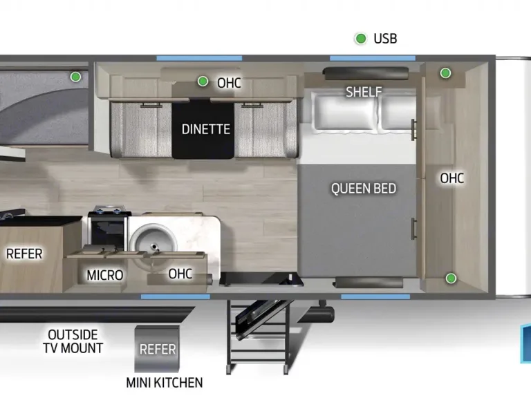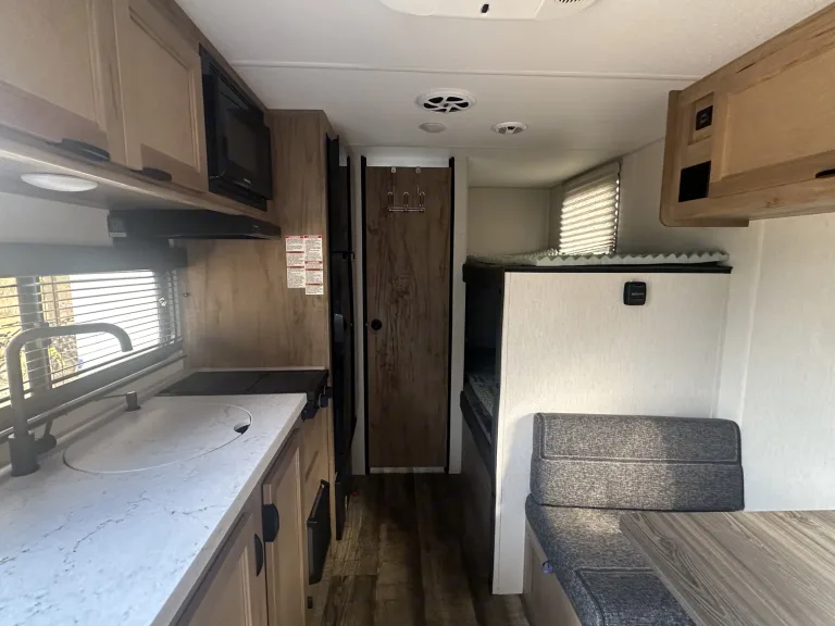 Your outdoor adventures are enhanced by the awning, bike rack, and outside shower.