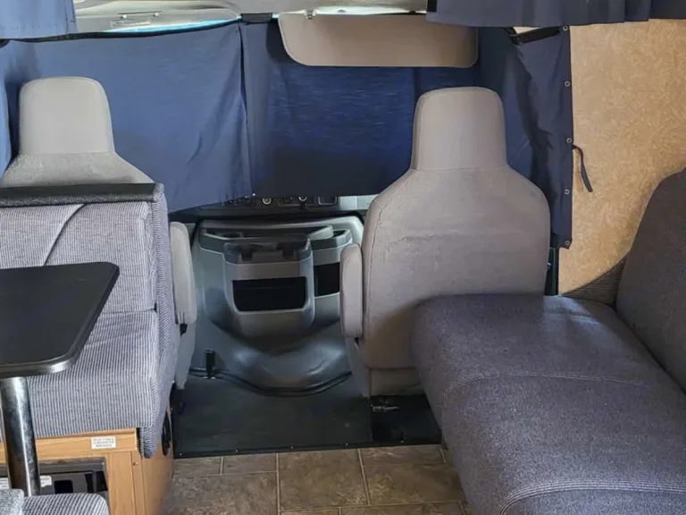 Private bathroom with toilet, sink, and a full shower – perfect for boondocking or campground hopping.Easy to Drive – Built on a Ford E-450 Chassis
