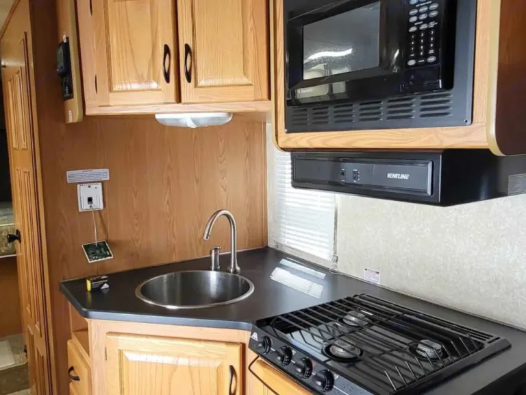 Queen bed in the rear, a convertible dinette, and a spacious over-cab bunk — everyone gets their space (and their beauty sleep)!Fully Equipped Kitchen