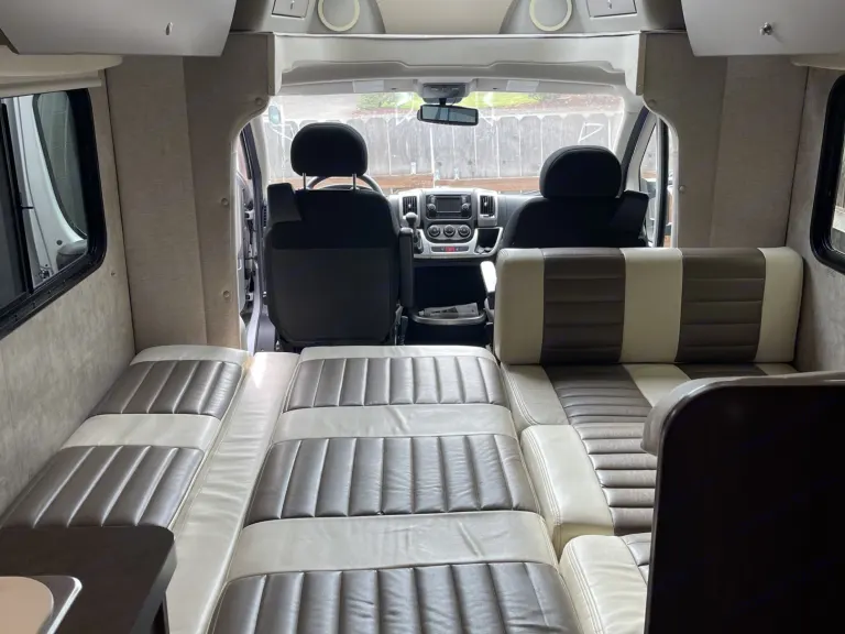 Cab Features: Swivel cab seats integrate into the living area, and a Radio/Rearview Monitor System with a 5-inch LCD touch screen, GPS, and Bluetooth.