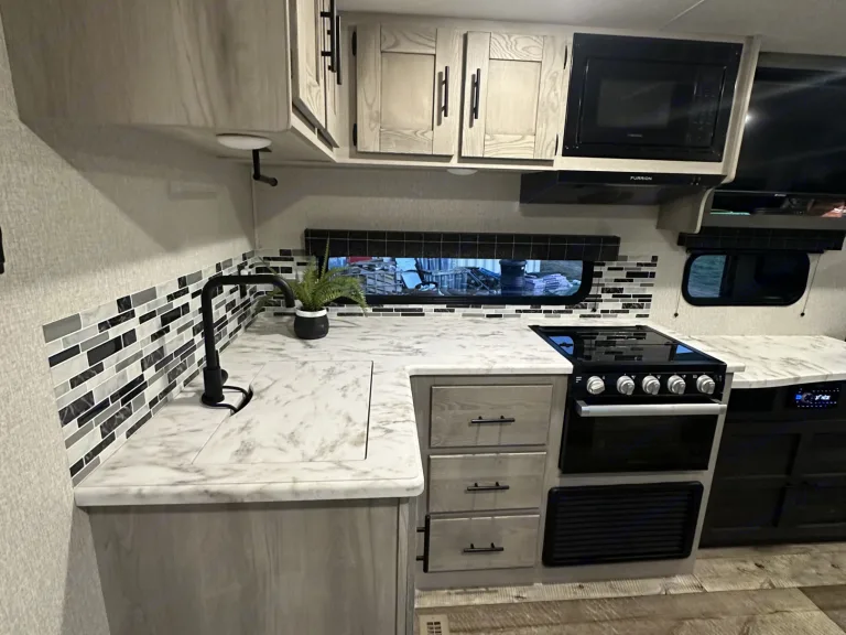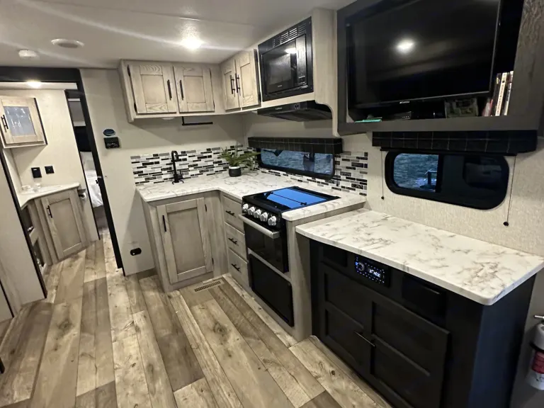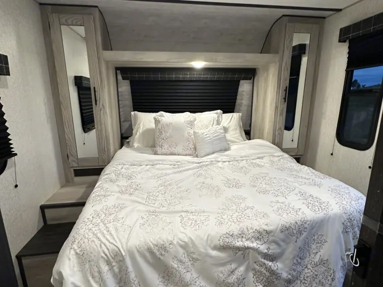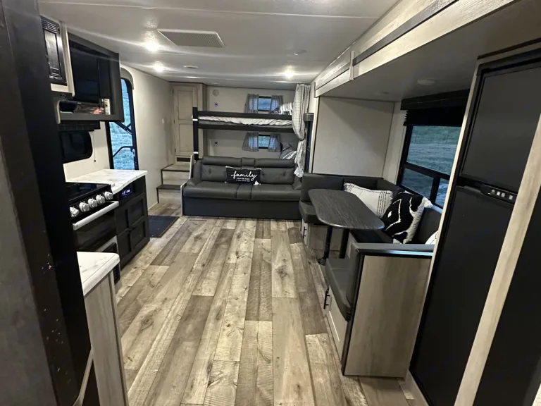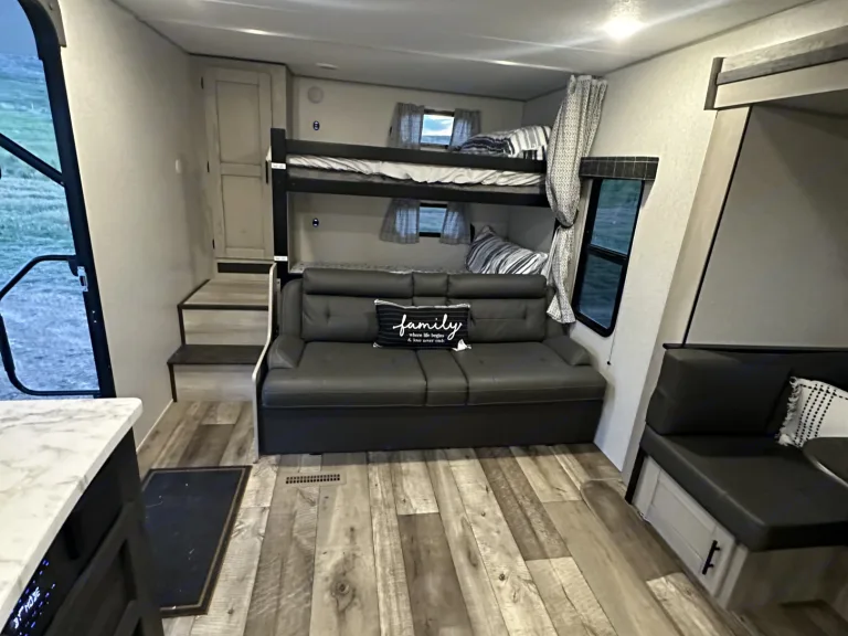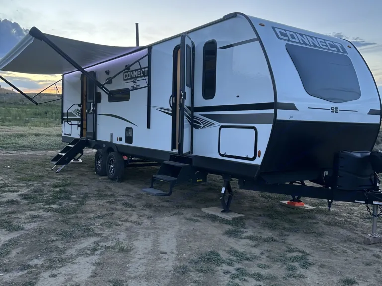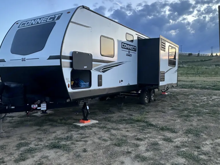 Our 2022 KZ Connect SE Trailer is in perfect condition and ready to host your family for your next adventure! This spacious trailer features a private front bedroom with a queen bed, 2 40"x70" bunks in the rear of the trailer, and slide out dinette that also converts to a bed. A large walk through bathroom that includes large storage areas. The modern design of the interior is comfortable and clean. There are indoor/outdoor bluetooth speakers and a TV for entertainment. A DVD player is included and a variety of family movies. The kitchen is stocked with everything you may need including a coffee maker, small electric griddle, cookware, cups, silverware, kitchen utensils, cutting board, and cleaning supplies. A/C unit for the warm days and heater for those chilly nights. Electric large awning with lights to assist when spending time outside. 4500 watt generator is not on RV but is available upon request with fee. Please treat this camper as your own!Linens not provided as most prefer to bring their own. If you would like linen we can provided just let us know. Cleaning and dumping required before returning or you will be charged an additional $75.Note: It’s very important that you use The power Surge at all times when hooking up RV to power we will provide Surge protector along with 30/50 Amp Adapter and long extensions.Note: The vehicle must have proper towing capability and hook ups for braking assist system. Fits a 2 5/16 hitch or we have one you can use as well as sway bars.Was ist inbegriffen• Small electric countertop griddle