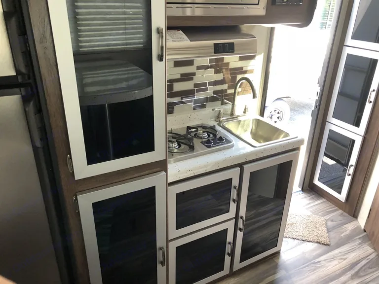 Our 2019 Travel Lite Falcon 21RB weighs in at only 2800 lbs. It can be towed with a 6 cylinder midsize truck, van or SUV. It comes stocked with everything you need for your trip except for linens and towels. Just bring clothes, linens, food and drinks. Top of the line in it's class with Michelin tires, electric tongue jack, electric awning, kicker audio system. Super easy to tow and set up.