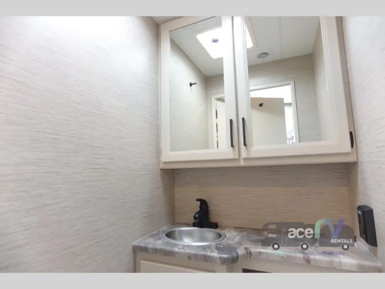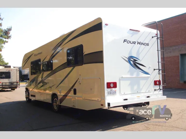 Whether you are couple or a family, this coach offers so many comforts you might never go back home! Beginning with the rear bedroom offering a walk-around queen bed with storage on each side, and the split bathroom allowing two people to get ready at once to the living room furniture that can double as sleeping space for overnight guests, this could be your perfect RV. There are full kitchen amenities such as a gas cooktop and microwave, plus the double door refrigerator is next to the mid-coach entry allowing you to grab a beverage on your way out to relax under the power awning with integrated LED lighting. There is more to enjoy like the 39" LED TV with swivel for the perfect view of the game, the dream dinette for dining and working, the sofa to relax on and the cab over bunk to take a nap.With any Four Winds Class C gas motorhome, you can travel in a trustworthy Ford E-Series chassis with 350HP, or a Chevrolet chassis with 323HP if you choose that option which is available on several models. Each is built with welded sidewall cage construction and a welded tubular aluminum roof, a one-piece fiberglass cap, and includes a slick fiberglass exterior with graphics package for style and years of enjoyment on the open road.  Inside, you will enjoy the well-equipped kitchen, the spacious bathroom, the sleeping accommodations and the Winegard Connect TV antenna that allows you to stay connected.