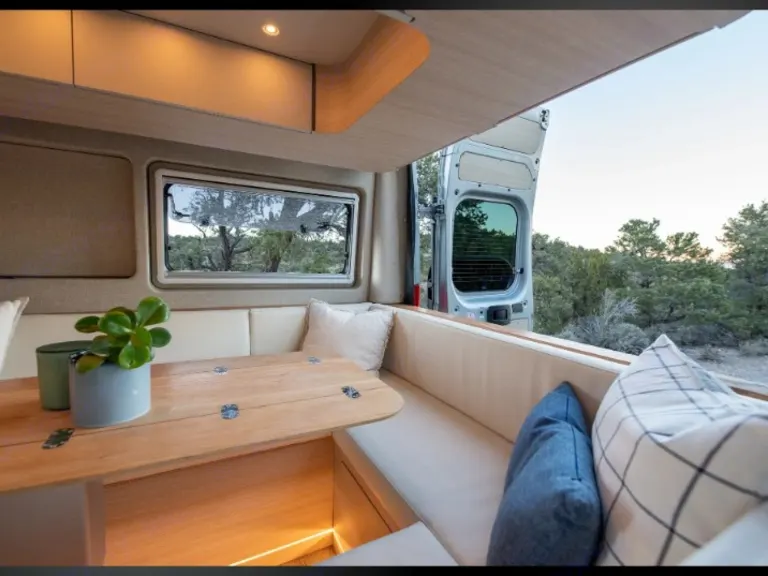 • Faith features an 8" PlushBeds Eco Green organic latex hybrid RV mattress layered with an organic wool mattress pad, organic cotton bedding, and fully encased washable pillows.