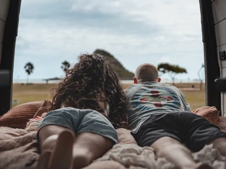 Think island vibes on wheels! This luxury campervan is perfect for a day of hiking, snorkeling, surfing, and exploring the hidden treasures of Hawaii. With a van like this, you won't even need a hotel room!The kitchen comes fully stocked with everything you'd need to enjoy from locally roasted coffee for sunrise, a refreshing acai bowl to escape the sun, and your favorite stir-fry before bed.After an adventure-packed day, layout on a king-sized memory foam bed to the sounds of the ocean. Each booking comes with fresh sheets, bedding, and pillows so that you don't have to stress!For climate control, our van has a ceiling fan and tons of windows that give you the perfect island cross breeze. For exceptionally hot days, we have an air conditioning unit that can be used (when plugged into an electricity source).Don't worry about feeling cramped as our home on wheels sleeps 2 people Very comfortably (3-4 if you're not plus-sized and traveling with friends). Unless you play in the NBA, chances are you can stand inside the van with no problem.This van is Beautiful. Be prepared to have people compliment you on your ride. Was ist inbegriffenKitchen- massive refrigerator, camp stove, pots & pans, plates, bowls, cups, blender, and coffee maker!Bedding- king-sized bed, clean linens, pillows & towels