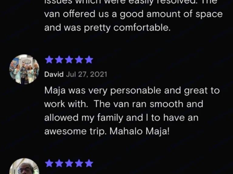 Aloha and Mahalo for checking out my sweet camping vehicle on Outdoorsy! You can also find us as ”Hope the camper van Hawaii” on Facebook to connect and get special discounts and offers. This beautiful van is a super comfortable way to enjoy the big island of Hawaii with a soft 12” full size memory foam mattress, plush blankets and pillows. She is a luxurious and very spacious ride in top shape and perfect to cruise around and enjoy our beautiful big island with! We love this luxurious version of the Dodge grande caravan! She is fuel efficient, reliable, discreet and extremely comfortable with a lot of legroom. We take great care of this van so she is in excellent shape and very well maintained. She gets mechanically inspected, detailed, cleaned and disinfected before every use. Low mileage and runs and looks great. Comes with many great bells and whistles like the lift gate and side doors that can be easily and quickly opened and closed remotely. Plenty of AC and DC outlets to charge devices. It’s top of the line with it’s beautiful leather and chrome interior and soft cushy seats. I put freshly cleaned cotton seat covers and bed sheets on for every rental. A terrific and comfortable commuter vehicle and a sweet little home away from home. The van fits up to 9 ft long surfboards right inside the cab but you can also use the roof rack if you want to utilize the inside space better. If you are a surfer like myself I’m happy to rent you a board or two! I will be happy to include a camp stove, cooking gear, a cooler and such so your ready too cook up a meal and feast in the great outdoors! Check out all my other extras for everything you might need to improve your trip like: snorkel gear and surf boards all available in the add on section. I am also offering seasonal discounts, discounted insurance and an orientation package that includes airport pick up and personally showing you secret camp sites and must see places from a locals point off view. It’s an amazing island with so many stunning sites but if you want to get away from the crowded touristy places and experience the island from a locals perspective I recommend inquiring about my orientation package. If it’s found on the internet it’s probably crowded so go off the beaten path and experience the real beauty of this incredible Island! Please feel free to message me for more information or for any other questions you may have. You can also find me on Facebook as Maja Sommerfeld. Only a few reasonably priced quality camper vans available for rent on the island and she’s booking up fast so don’t miss out and book now! It will be waiting for you all cleaned up, fueled up and ready to go on your great big island adventure! So much to see on this amazing island you will be so glad you can do it hassle free and in comfort and style with this great cruiser! Thanks for checking out my listing and hope you have a wonderful stay and a great adventure on our beautiful and amazing island! Don’t forget to look up ”Hope the camper van Hawaii” on Facebook to connect and find special offers and big discounts. Mahalo and Aloha! (:Was ist inbegriffenFresh and clean linens, Plush 12” foam mattress, pillows and blankets. Great compact and very effective butane stove, cooking gear, plates, cups and utensils. I also have surfboards, coolers and more. Bedding comes automatically but please add on everything else at check out.EmpfehlungenFind ”Hope the camper van” on Facebook to connect and get special offers and discounts. We know all the best must see sights and activities on the island and are happy to share our knowledge to help make your trip be the best adventure it can be once you book with us 😊 Mahalo and Aloha!Weitere wichtige DingeWe kindly ask that you take good care of the vehicle and return it in the same shape you found it. We also respectfully ask that for the safety of passengers and vehicle you don’t drive on saddle road and only on paved roads. Mauna Kea summit, Saddle road, Green sand beach (south point) and Makalawena beach are strictly off limit. These locations can be dangerous to drive to and can easily damage the vehicle. Mahalo for your understanding 🌸🌈☀️