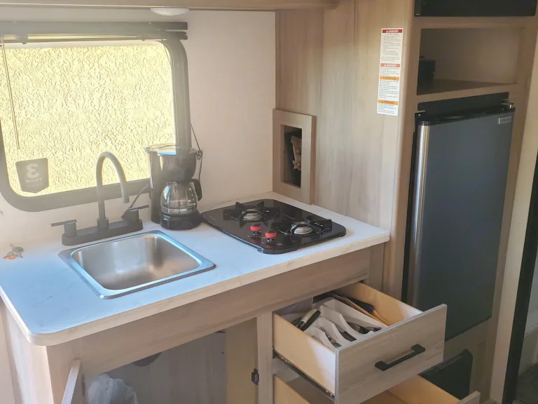 Enjoy a stress-free Lake Havasu trip in this new, clean, and fully equipped 20.5 ft travel trailer that comfortably sleeps up to 5 guests. Whether you’re heading to the lake, camping with family, or just want a comfortable home base, this trailer is designed to be simple, reliable, and easy to use.Was ist inbegriffenThis trailer comes fully equipped with all standard RV essentials needed for a comfortable and easy trip, including kitchen basics, bathroom facilities, climate control, and all required hookups for power, water, and sewer. Everything is cleaned and sanitized before each rental. Delivery and full setup are available in the Lake Havasu area, and first-time RV renters are welcome — we’re happy to walk you through everything so you can relax and enjoy your trip. Just grab your clothes and a pillow!Weitere wichtige DingeNo Smoking and No Burning Man