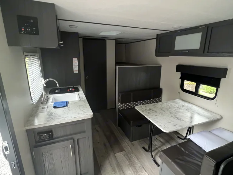 Aspen Trail is a new 2022 model. It comes equipped with burner stove ,microwave and refrigerator. Also has bottom storage in dinette chairs and partly under queen bed. It has water sewer hook up and electric. Comes with electrical cable, sewer hose, and water hose. Enjoy the cool AC in the warm summer days and the fire place heat for cozy winter days.Was ist inbegriffenLinen can be provided with a $25 clean wash fee. Feel free to bring your own linen and save. Generator available at $65.