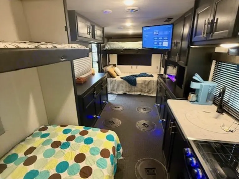 2023 Forest River Grey Wolf 21GP Special EditionFully insulated for all-season useHeat & A/C for cozy winters and cool summersDining table/bed, queen hydraulic bed above, jack knife sofa/bed, and bunk aboveKitchen with large fridge, oven, stove, and microwaveSolarSpacious layout with sleeping, lounging, and gear storage30 amp power required for cabin usePerfect For: