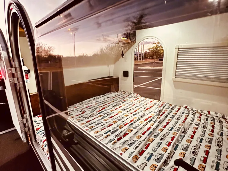 Features:Compact Convenience: Measuring just right, our Tear Drop Trailer is incredibly easy to tow, making it a great fit for various vehicles. No need to stress about maneuvering through tight spots or crowded campsites.Air Conditioning: Stay cool and comfortable during warm summer getaways with the built-in air conditioning unit. Experience a refreshing escape even when the temperatures rise.Sleeping Haven: Despite its compact size, this trailer accommodates a cozy sleeping space for two. Unwind after a day of exploration and sleep under the stars in total comfort.Outdoor Galley: The rear hatch reveals a cleverly designed outdoor galley equipped with a sink and countertop space. Prepare quick meals and enjoy al fresco dining with ease.Storage Solutions: Thoughtful storage compartments are seamlessly integrated, providing ample room for your travel essentials. Pack efficiently and keep your living space organized.Ventilation and Windows: The well-placed windows and ventilation system ensure a fresh breeze flows through the interior, creating a pleasant atmosphere no matter where you park.Efficient Lighting: LED lighting brightens up the space while being energy-efficient, adding to the cozy ambiance both day and night.Was ist inbegriffenTrailer includes: