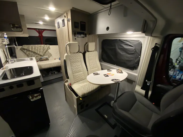 Introducing the all-new, all-weather Winnebago® Solis. Built on the fuel-efficient Ram Promaster® chassis, the Solis features all-season insulation and plumbing, a space extending rear annex and a heated bathroom. In addition to the cross-coach sleeping below, the fiberglass pop-top easily expands your sleeping space, offers panoramic views and provides a restful night's sleep with the innovative Froli® sleep system.As versatile as it is comfortable, enjoy the view as you work or play with the versatile workstation, and then call it a night in the rear Murphy Bed with European slat sleep system! With its heavy duty vinyl flooring, recirculating hot water system, below floor storage, two exterior wash stations and an adjustable table to take in all the views - it's clear, the Solis can adapt to any adventure.Full Photos Here: Check full photos at [URL removed]*We don't guarantee specific vehicles or years, only vehicle model types as we have several in our fleet*All of our Solis campervans are 59P Models. We have both floorplans – murphy bed and sofa bed. *We can’t guarantee which floor plan you will have unless you have a group of 5 or 6 people and require the additional seat belts provided in the sofa bed model. You can request your preferred floor plan and we will do our best to get you in that floor plan if possible. If you have a group of 5 or 6 people you must make sure you have requested the ‘sofa bed’ model with extra seat belts in your notes to us and then we will confirm that model is available and has been reserved for your trip dates prior to charging your credit card.