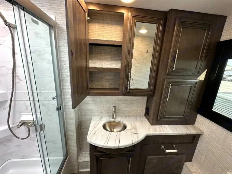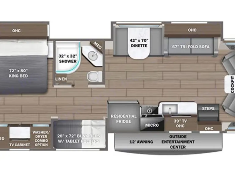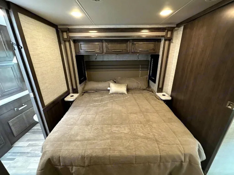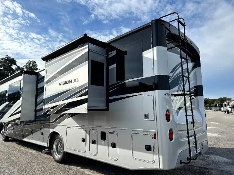 Longer and more spacious than its sister RV, this Vision XL is jam-packed with innovative standard features you won't find on competitive Class As. The Firefly Multiplex system and Winegard 2.0 WiFi/4G antenna are just two of the new technologies included on this year's model. This coach is also equipped with the E-Z Drive(tm) Elite package that provides the superior ride and handling experience travelers have come to expect from Entegra Coach. Among other upgrades, the Vision XL includes a 190-watt solar panel with dual controller and king beds in more floorplans, standard. Exterior Windows Frameless windows Exterior Entertainment Exterior entertainment center with outside speakers, LED TV mounted on swivel bracket and single-disc DVD/FM radio Patio Awnings Electric patio awning with LED lights Slideout Awnings Slideout cover awnings Solar 190W solar panel with dual controller Utility Center Exterior utility center Outside Shower Outside shower Entrance Door Entrance door with industry's largest travel-view window Entrance Steps Electric-powered entrance step Cargo Features Lockable pass-through storage compartments with slam latches Ladder Roof ladder Satellite Dish Prep for satellite dish Third Brake Light Third brake light Interior Television - Living Room LED HD Smart Fire TV in living area Window Treatments Day/night roller shades in living area Electric Fireplace Furrion electric fireplace (34B, 34G only) Command Center Firefly Multiplex system Ceiling 84-in. interior ceiling height with padded vinyl ceiling Lighting High-intensity recessed LED ceiling lights Fascia LED-lit hardwood fascia Cabinetry Hardwood cabinet doors and drawers Cable hookup Cable TV hookup with RG-6 coax Antenna Winegard 2.0 Wifi/4G antenna Bunks Bunks with industry-exclusive, 300-lb. capacity each (36A) Kitchen Kitchen Countertops LED-lit, solid-surface kitchen countertops Sink Recessed stainless steel sink and sink covers Drawer Guides Ball-bearing drawer guides Dinette Entegra-exclusive, easy-operation legless dinette table Refrigerator 21-cu.ft. residential refrigerator with ice and water in door Cooktop Furrion all-in-one cooktop and oven Microwave Residential-size microwave Kitchen Backsplash Decorative kitchen backsplash Vent Powered roof vent in kitchen with wall switch Bedroom Bedroom Mattress / Bedding Walk-around King-size bed with bedspread and nightstands Under-bed Storage Under-bed storage (select models) Television LED TV in bedroom Bedroom Wardrobe Large wardrobes Bathroom Bathroom Shower Shower with decorative surround, skylight and light Bathroom Shower Door Glass shower door Sink Recessed stainless steel bathroom sink Toilet Porcelain toilet with foot flush Bathroom Ventilation Powered roof vent in bathroom with wall switch.