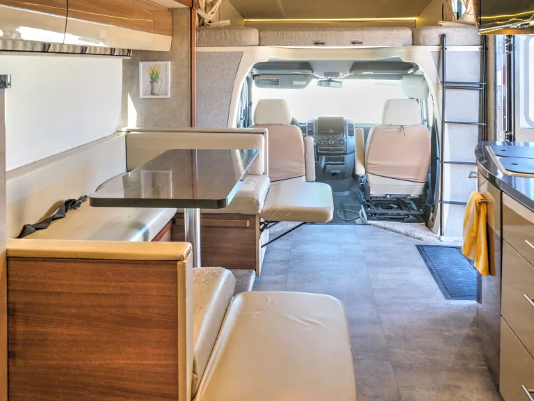 Trade screen time for stargazing and hit the open road in this luxurious, like-new Class C RV. Built on a reliable Mercedes Sprinter chassis, this Winnebago is perfect for multi-day adventures to remote destinations like Big Bend National Park, where you can truly escape the hustle and bustle. The long drive is a breeze in this comfortable RV, and once you arrive, you'll be treated to some of the darkest, most incredible night skies in the country.This RV comfortably sleeps four with a cozy queen bed and a bunk over the cab that sleeps two. Enjoy the comforts of home with a full bathroom and a fully equipped kitchen. Stay connected and powered no matter where you are with a cellphone booster and solar panels. The air conditioning and heat ensure you'll be comfortable in any weather. With tons of storage, you'll have plenty of room for all your gear, from hiking boots to telescopes.This RV is perfect for quick getaways or extended trips, allowing you to set up your campsite in minutes. We welcome pets and festivals for an additional fee. No smoking is allowed.Want to make your trip even more epic? Check out our optional add-ons, including a propane fire pit, stand-up paddleboard, and a 4-bike rack.Note: The awning is not for guest use.Was ist inbegriffenKitchen Supplies