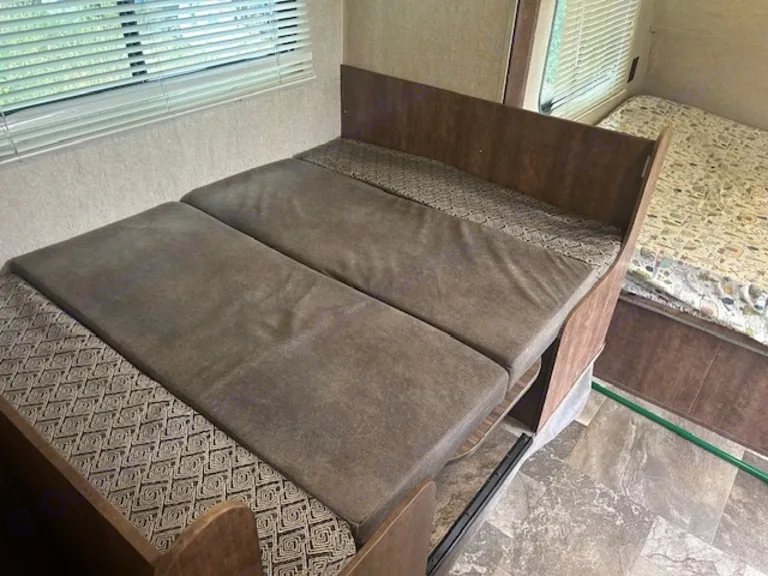 Easy to tow, with extra clearance, this is a single-axle travel trailer designed for families. Don't let the size fool you, measuring 18 ft, with a dinette slideout, there is enough room for 5 plus dogs. Beds all have memory foam mattress tops, making your rest after a long day comfortable.