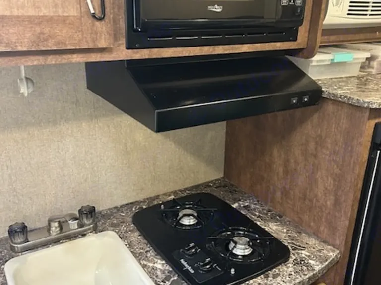 Brake control required (not provided). Must be able to tow with the anti-sway control hitch (as many new SUVs recommend not towing with the anti-sway), please check your owner's manual. Not responsible for damage to your vehicle if the vehicle is not recommended for use with the anti-sway control hitch.Was ist inbegriffenPropane for the trailer, outdoor kitchen prep table, camp stove, basic cooking supplies, bedding, and anti-sway hitch included. It also includes a power awning, interior integrated speakers, and LED lighting.