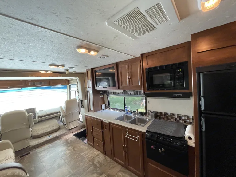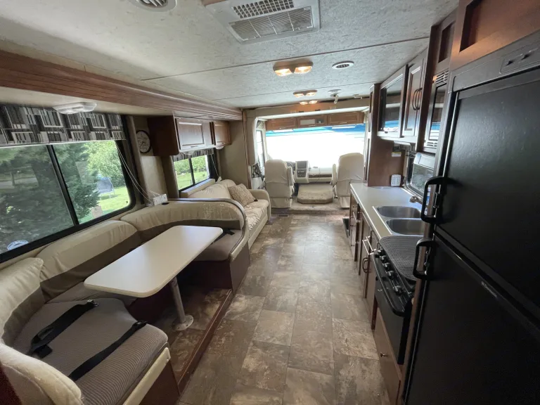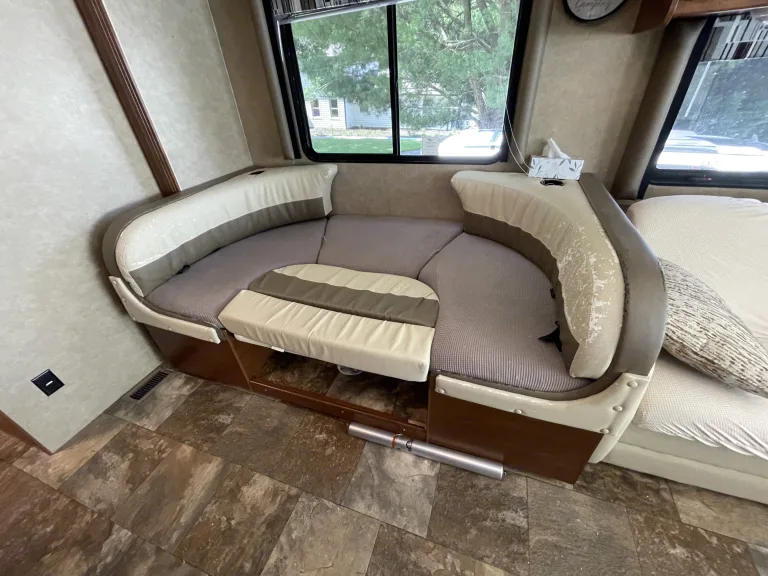 Meet Bruno: our family's chariot to South Texas, Key West, Disney, Myrtle Beach and adventures everywhere in between. Bruno is a class A motorhome big enough for our family of 5 to vacation in for long stretches on the road. He features a rear master with standard Queen sized bed, motorized double twin above the driver’s chairs, pullout couch, convertible U shaped dinette, separate shower and bathroom space, 2 slideouts, large awning, 2 TVs with Roku, all with brand new marine grade leather upholstery, tons of storage, and more counter top space than you can fill. Whether you are look for a weekend mountain getaway or a long stretch at the beach, Bruno can handle it. Was ist inbegriffenThe kitchen comes fully equipped with plates, utensils, and cookware for most camping meals. Sheets, pillows, and blankets are provided for each bed along with 6 sets of towels. Bruno also comes stocked with toilet paper, paper towels, trash bags, and basic cleaning supplies. 4 camping chairs are on board and the generator is ready for use should you need it. All hoses, cables, and connectors to hook up water, power, and sewer at the campsite are on board. Weitere wichtige DingeWe offer delivery and setup with in 30 miles of our home base in Maryville. If you would like to pick up Bruno, please plan for about 20-30 minutes for us to do a quick walk through and make sure you know how to use and work Bruno's features. Our family’s rig is easy to drive and we will happily spend some time with you making sure you are comfortable behind the wheel. Bruno is not for festivals, tailgating, or use with pets.
