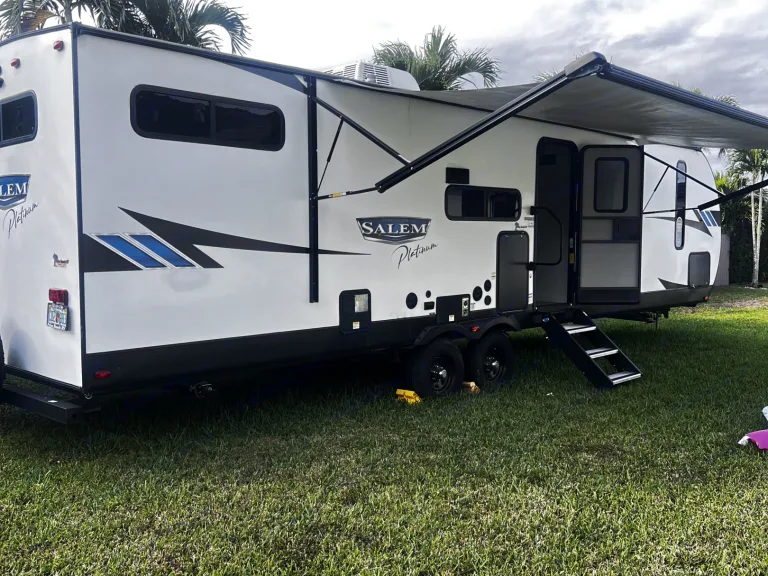 Platinum Travel TrailerSpacious and comfortable 36-ft Forest River Salem Platinum travel trailer, perfect for family trips, couples, or extended stays. Features a roomy living area, full kitchen, bathroom with shower, and cozy sleeping spaces.Includes A/C and heat, plenty of storage, and upgraded Platinum trim finishes for a true home-away-from-home feel. Clean and well maintained.•2 bedrooms