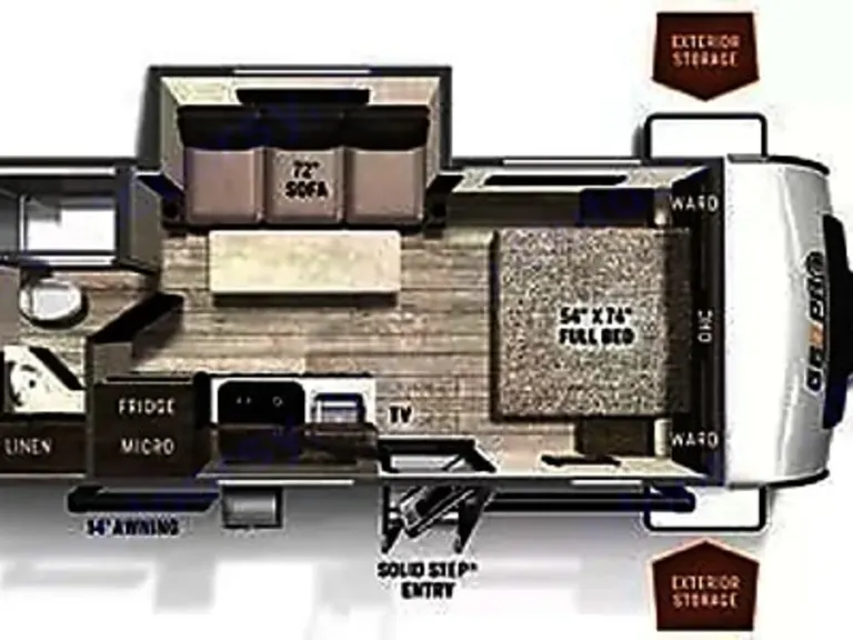 The Rockwood Geo Pro G19FBS is a rear entry couples coach with a small slide that offers so much great space. The large bathroom is one of the best features of this small couple's coach. The 72” pull-out sofa also makes for a great bed for guests, and children. At 20’ and lightweight, you will not be able to get more walk-around footage than this great couples coach. Stock with pots, pan, coffee maker, and basic cooking supplies.
