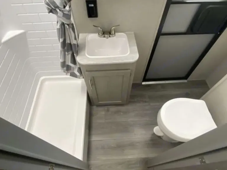 We have a 36-foot Trailer with a queen bed and bunk house. Second-door access to the bathroom to keep the kids from running in and out of the trailer. We also have a toaster oven, crock pot, coffee maker, six plates, cups, bowls, silverware, cooking utensils, pots, and pans.