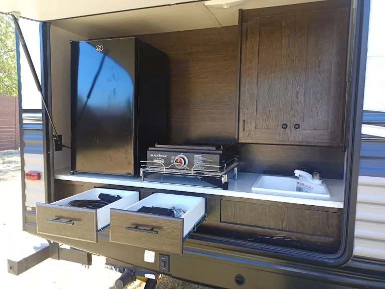 • Two slide-outs and an outdoor kitchen make this trailer perfect for spacious group fun.