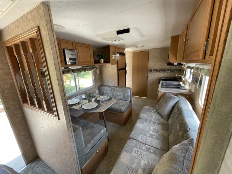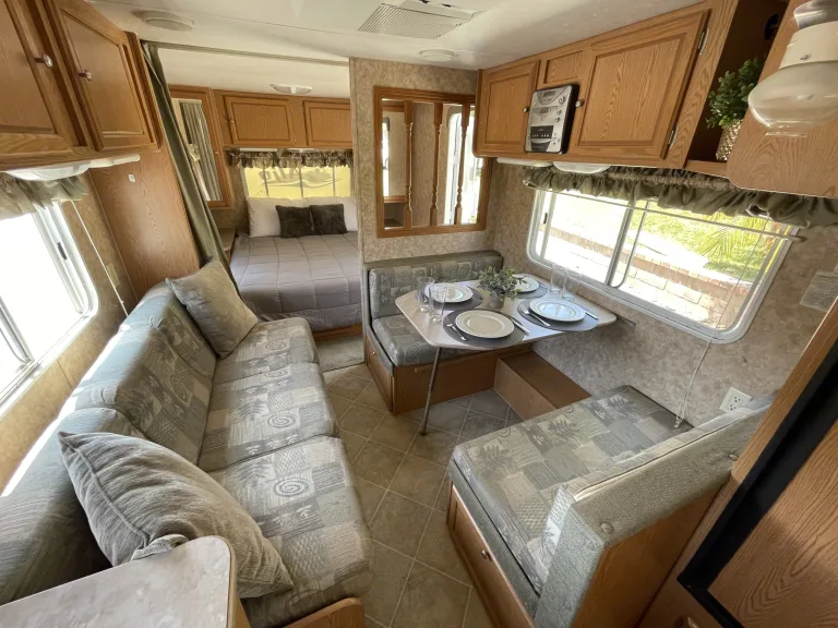 Awesome camper in excellent condition ready for your next adventure! Has 3 beds that can sleep 5 people total. Roomy bathroom and shower. Trailer can be pulled by full-size SUV's and quarter ton trucks. Comes with all kitchenware. Was ist inbegriffenCamp chairs, fresh linens, kitchenware.