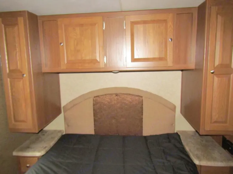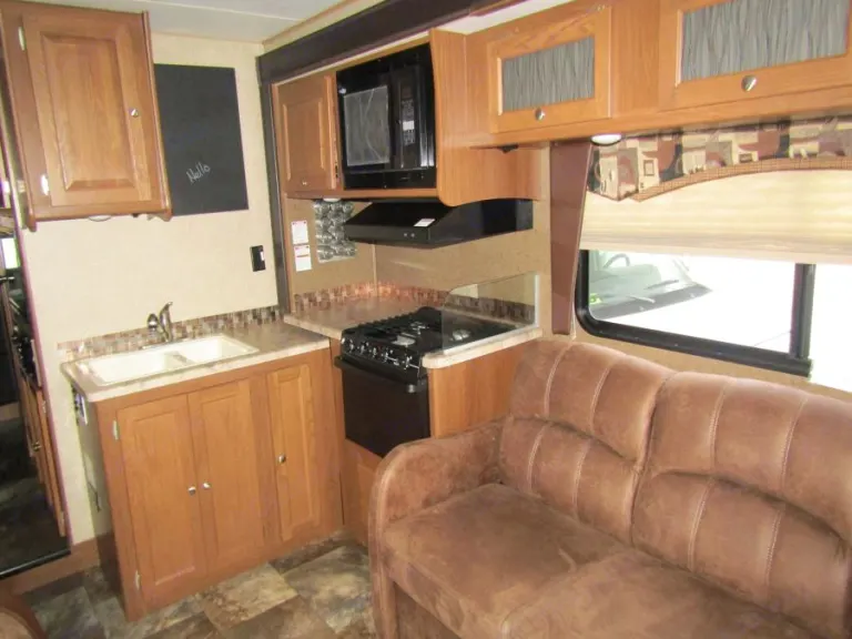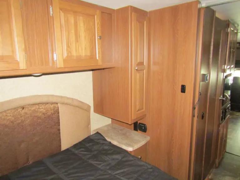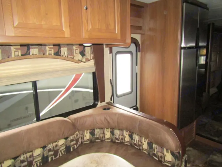 Plenty of seating with 9 total seat belts. Driver and passenger seats swivel. 3 burner stove, microwave / convection oven, oven, dual sink and a large 4 door fridge / freezer for storing enough food on your adventure. TV and DVD player above the cab to enjoy while just relaxing or sitting for dinner. Additional entertainment with TV and DVD player in front of the bunk beds. Full bathroom with toilet, sink and stand up shower. Queen bed for main bedroom with privacy door, bunk beds, dining table conversion bed, sofa bed conversion, over cab queen size bed with security net and privacy curtain. All shelves are all lined to keep items from sliding around and moreOutside motorhome features