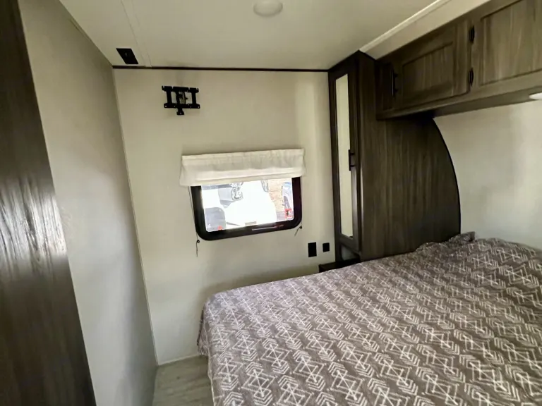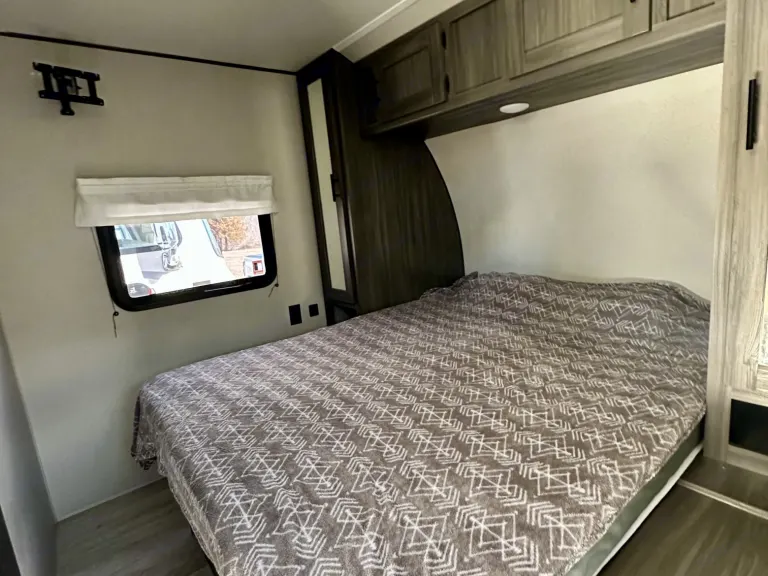 Unwind in a private queen bed and spacious interior after a day of adventure.