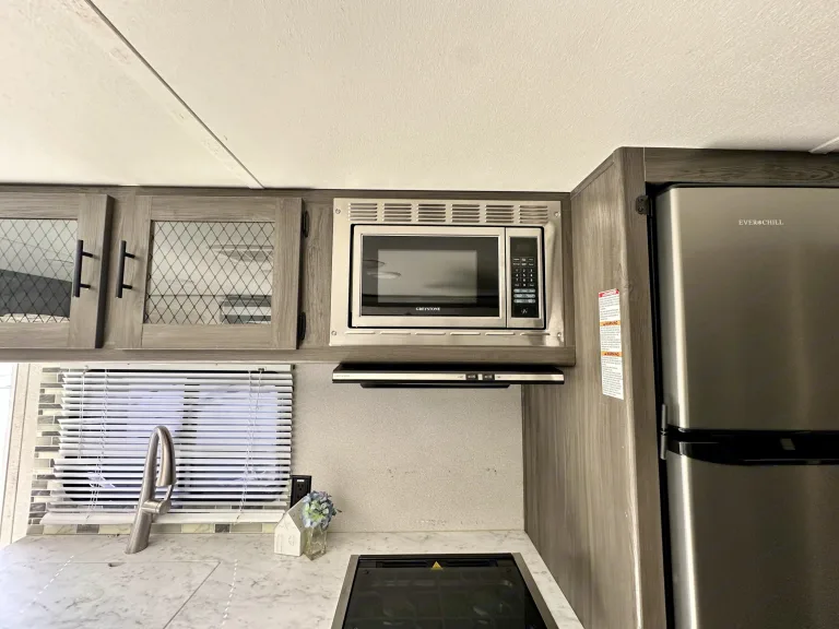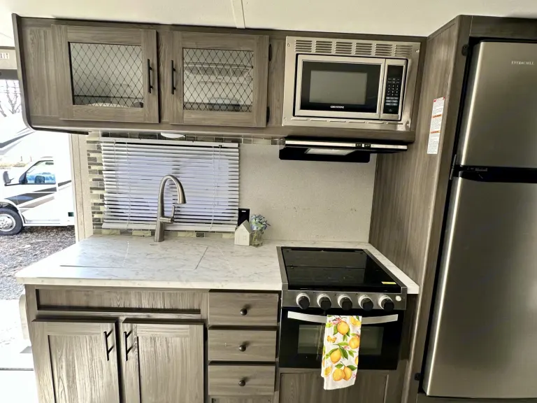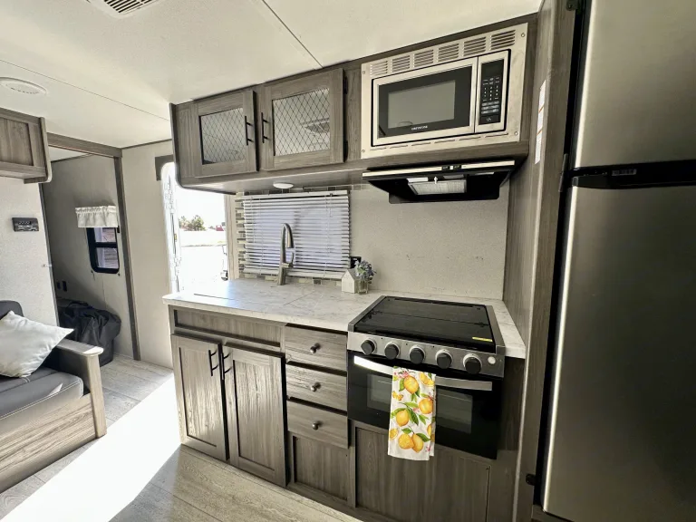 Enjoy al fresco dining effortlessly; this lightweight RV is easy to tow or deliver.