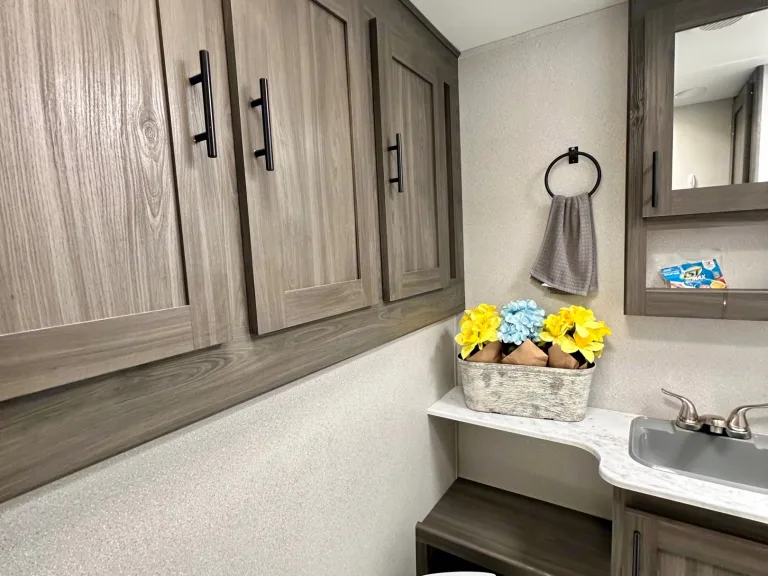 Elevate your camping with a gourmet outdoor kitchen, fridge, and grill option.